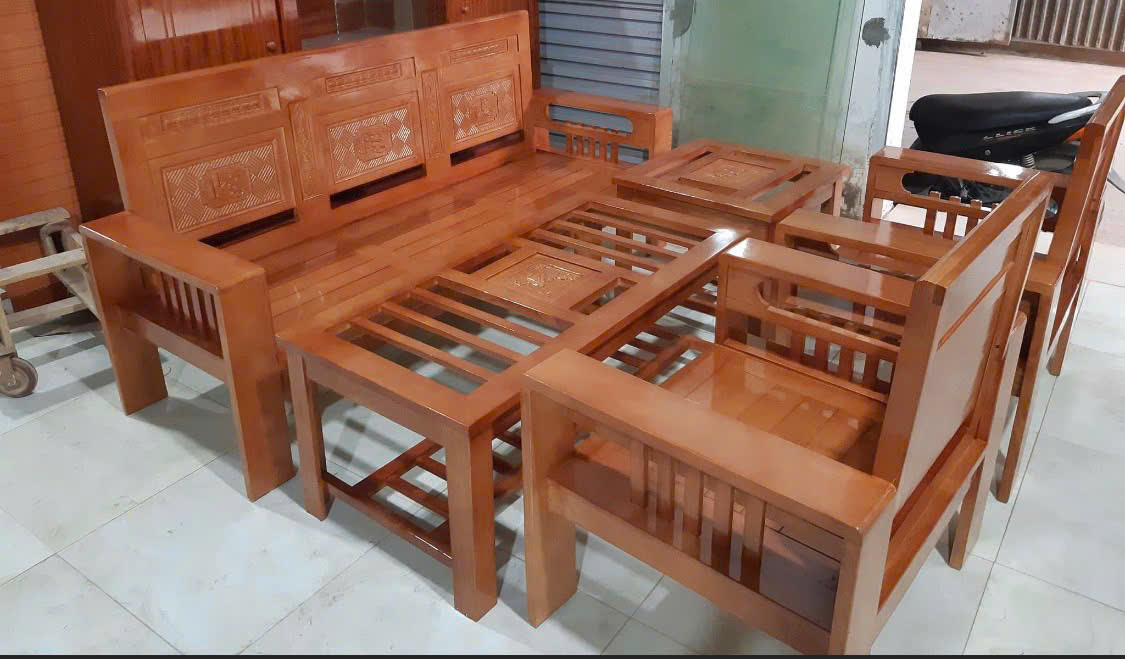 Bộ bàn ghế phòng khách sofa gỗ sồi giá rẻ 6,2 triệu kích thước ghế băngg rộng 2m , 2 ghế đơn rộng 80 cm