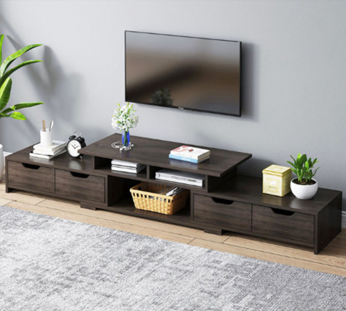 Kệ tivi gỗ có ngăn tủ kéo dài 2m DC10 được làm từ gỗ công nghiệp phủ melamine có thiết kế 3 tầng gồm 4 ngăn tủ kéo, 3 ngăn hộc để đồ và 1 kệ để tivi. Kệ có thể kéo ra hoặc rút gọn vào, kích thước Kệ TV: Dài ngắn nhất 2m - dài nhất 2.4 x Sâu 30cm x Cao 40 cm